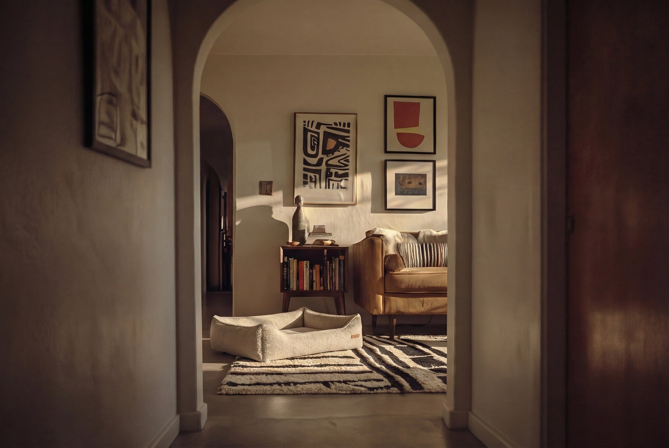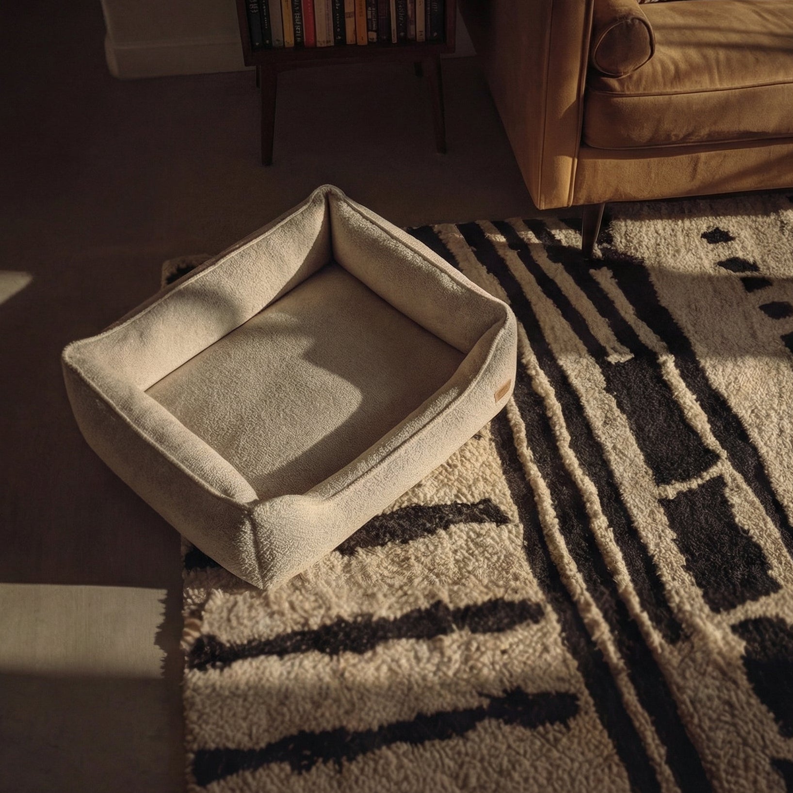 The first dog bed designed to respect your living room. Engineered with the same upholstery physics as your sofa, because your dog deserves better than a floor pillow.